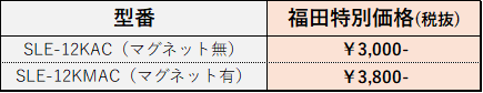 - 型式:SLE-12KAC(マグネット無)/SLE-12KMAC(マグネット付)